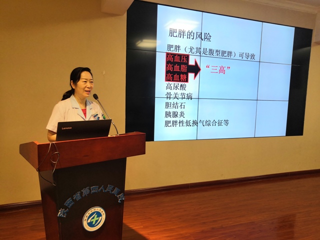 本期讲座,由亚色视频 消化内分泌科主治医师路玉洁担任主讲, 讲座前消化内分泌科医护人员为到场的糖友免费进行了义诊和血糖监测以及发放了健康宣教手册。随后主持人黄静主任医师的“今天主讲的题目是啥?”现场人员一口同声答道:抛掉“三高”、收获健康 ,一个简单的提问,把现场参会听讲人员的注意力集中在课堂上。 俗话说,糖尿病不可怕,糖尿病并发症最可怕,的确,糖尿病带来的器官受损直接影响身体健康,并严重降低生活质量。对于2型糖尿病患者,最常见的就是心脑血管病变。 路老师主要从糖尿病的患病因素、典型和不典型临床表现、诊断、?だ?/span>以及血糖、血脂、血压等方面的代谢控制,可以控制糖尿病,避免急性并发症,预防慢性并发症,使患者与正常人一样拥有美好的生活等方面进行了详细讲解。用临床典型案例,生动的讲授了以教育为中心,集饮食、运动、药物、监测、心理、预防相结合的糖尿病综合管理科学理念,让糖友们对糖尿病的并发症有了更全面的认知。讲座结束后,消化内分泌科主任医师黄静和路玉洁主治医师与现场人员进行了互动,接受糖友们的健康咨询,友情提醒高血压病友们清晨起床经历3个两分钟(醒后睁眼平躺2分钟,缓慢起床后静坐2分钟,站立2分钟)再服药的重要性。对血糖控制不理想的病友也进行了一对一指导。