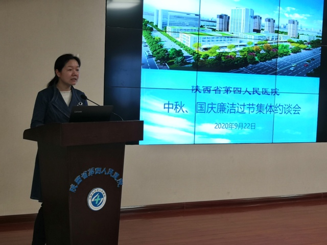 2020年中秋、国庆节将至,为深入贯彻落实中央八项规定精神,扎实开展好第三个纪律教育学习宣传月活动,持之以恒纠正“四风”,9月22日下午,医院组织召开了中秋国庆廉洁过节集体谈话会,会议由院长贾延主持。