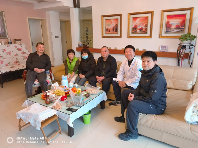 在家中,院领导与老同志们亲切拉家常,回忆创业时期,展望医院未来,为他们送去组织的关怀和温暖,并致以新春祝福。老同志们对医院疫情期间对职工患者的负责,勇于担当的精神点赞,他们对医院的时刻关注、良好的身体状况和积极的生活态度也深深感染了大家。院领导对离退休老同志为四院发展打下的坚实基础表示感谢,叮嘱老同志们保重身体,健康长寿,外地居住的老同志还打来电话,对医院的关怀慰问表示感谢,在职、退休干部一起共同祝福医院蒸蒸日上,再上十四五新台阶。