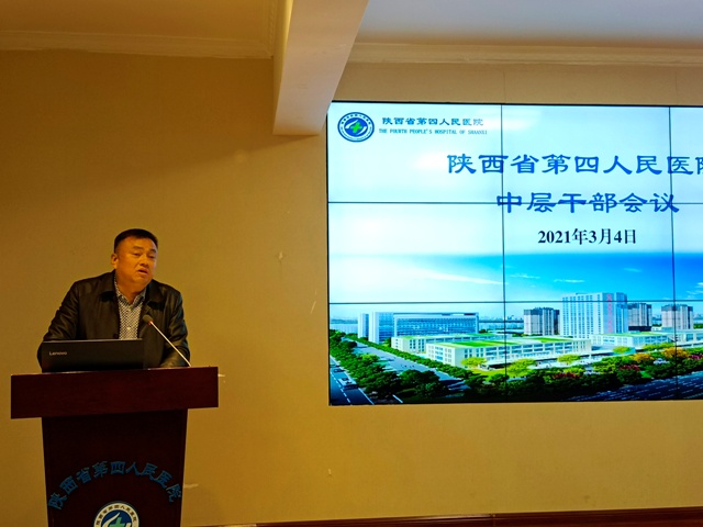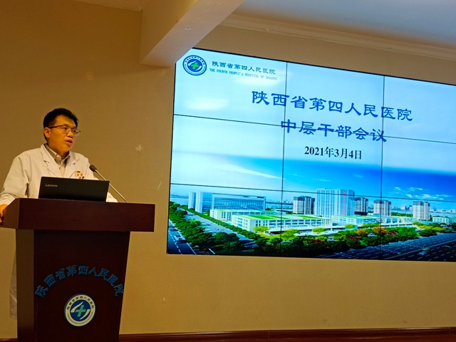 3月4日下午,陕西省第四人民医院“中层干部会议”顺利召开,会议由李广勤书记主持,院长贾延、院领导班子成员、医院全体中层干部参加了会议。
