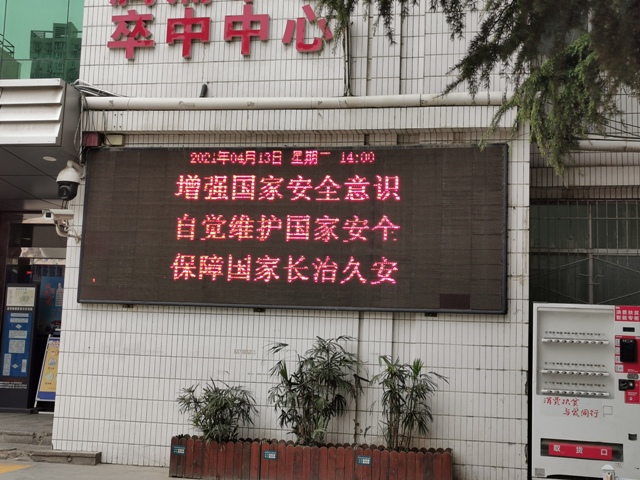 今年全民国家安全教育日的活动主题为“践行总体国家安全观,统筹发展和安全,统筹传统安全和非传统安全,营造庆祝建党100周年良好氛围”。在全民国家安全教育日期间,医院从工作实际出发,将全民国家安全教育日宣传教育活动作为政治学习的重要内容,结合党史学习教育工作重点,提前安排、精心部署。各科室组织观看央视“全民国家安全教育日主题教育活动直播”和专题宣传片,多渠道多形式进行宣传教育。制作有关国家安全教育日的宣传海报、专题文章、信息推送、公益视频,利用医院门诊楼和新住院楼的LED显示屏,医院微信公众号、官网等网络环境循环展播等丰富多样的宣传教育形式,努力营造国家安全人人有责、人人可为的浓厚氛围。