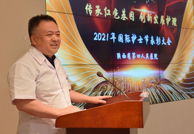 党委副书记、院长贾延做总结讲话。他代表院领导班子对全院护理同仁送上节日的祝福,对全院护理人员的辛勤工作和取得的成绩给与高度肯定,对参加抗疫和坚持临床一线30年的护理人员给予高度赞扬,对获得陕西省级优质护理先进集体及个人表示祝贺,对护理团队给予高度评价,肯定了护理团队工作的付出及为医院发展做出的贡献。院长的讲话,激发了全院护理人员的工作热情,在建党100周年即将到来之际,护理人员要传承红色革命精神,创新发展护理,心向党,跟党走,立足岗位做贡献,在新时代、新征程中奋发作为,努力为人民群众提供高质量的护理服务,为百姓健康做实事,以优异成绩向中国共产党100周年献礼。