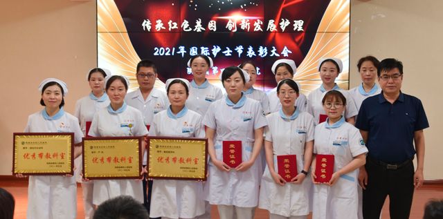 为了纪念第110届“5.12”国际护士节,弘扬南丁格尔精神,传承红色基因、创新发展护理,鼓励广大护理工作者立足岗位,树立榜样、弘扬护理职业精神。5月11日下午,亚色视频 举办2021年5.12国际护士节纪念表彰大会,会议采取了线上线下同时进行的形式。党委副书记、院长贾延,党委副书记郭皖营,副院长刘彦君、聂书伟,纪委书记王培以及职能部门、临床科室主任、护士长、护士代表近100余人参加了会议。