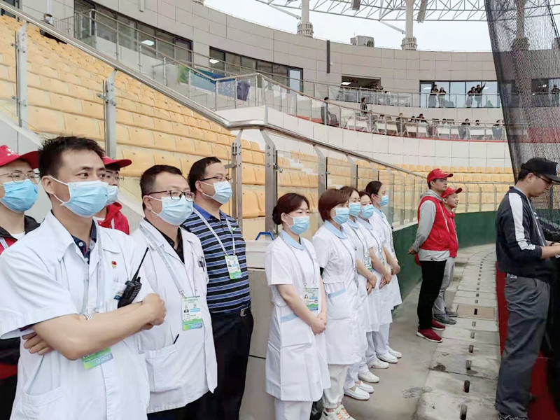 开赛当天天刚亮,保障组全体队员集合,投入到赛场、观众席、酒店、急救转运及保障医院的医疗保障中,虽然当天风雨交加,但是大家坚守岗位、认真负责、直至比赛结束,现场医疗救治3人次,顺利完成此次垒球测试赛的医疗保障任务。