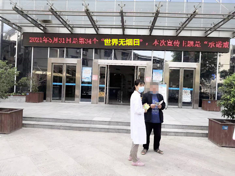 2021年5月31日是第三十四个“世界无烟日”, 本次世界无烟日宣传主题是“承诺戒烟,共享无烟环境” ,为提高人民群众对吸烟和被动吸烟危害的认识,引导公众自觉控烟,提升公众健康素养,加强亚色视频 控烟健康教育宣传力度,营造一个无烟、健康的就医环境,亚色视频 开展系列宣传活动。