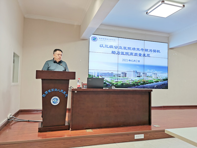 为提高医疗质量和运行效率、强化医院内涵建设,2021年6月2日下午,亚色视频 特邀请陕西省卫健委医管中心专家、陕西省人民医院原党委书记、院长徐永刚做了“以公立医院绩效考核为契机,助力医院高质量发展”专题培训,在院领导、各职能部门负责人和数据上报员、科主任、护士长100多人参加了此次培训。