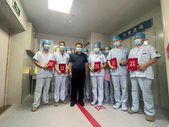 2021年 8月 19日是第四届“中国医师节” ,今年医师节的主题是“百年华诞同筑梦,医者担当践初心”。为继续弘扬“敬佑生命、救死扶伤、甘于奉献、大爱无疆”的卫生职业精神,激励广大医务工作者以先进典型为榜样,让医务工作者们感受到节日的温暖,8月 18日上午,党委副书记、院长贾延、党委副书记郭皖营、副院长聂书伟、副院长刘彦君、副院长陈晖、纪委书记王培、总会计师夏军等院领导分四组,带领党办、院办、医务科、护理部、事业发展部等相关部门负责人,深入临床科室开展医师节慰问与表彰活动。