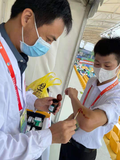 一天的保障工作在积极状态中就此开始,各区小组医务人员严阵以待,密切关注运动员、教练员、技术官员、志愿者、公安、保安等所有在场人员的健康状况,一旦发生医疗事件,将快速“出击”,确保十四运参与人员和观众生命健康安全。