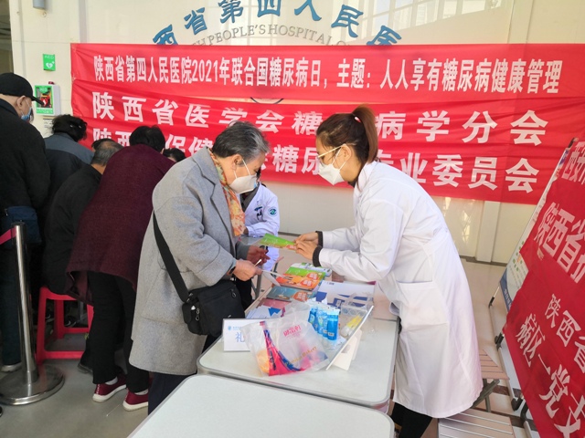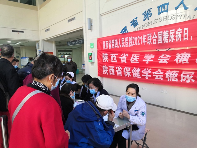 为推进党史学习教育“我为群众办实事”实践活动走深走细走实,积极响应院党委号召,在2021年“联合国糖尿病日”来临之际,省第四人民医院病区一党支部联合消化内分泌科、眼科11月9日下午在住院部一楼大厅开展“人人享有糖尿病健康管理”健康义诊活动,旨在唤起公众对糖尿病健康管理的重视,了解糖尿病的危害,改善生活中的不良行为,提高自身和家人的健康管理的意识,控制和延缓糖尿病及其并发症的发生、发展,积极促进群众形成健康的生活方式,享有健康管理,拥有健康未来!
