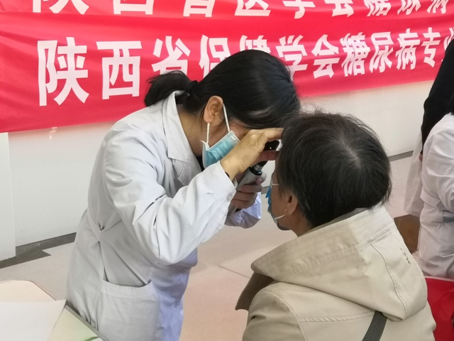 活动现场,邀请消化内分泌科主任武彦芳、主任医师黄静和护士长邹湘君亲临现场指导并热情为群众义诊,病区一党支部委员、消化内分泌科主治医师路玉洁和党员医务人员为群众提供义诊咨询、免费测量血糖血压、发放糖尿病知识手册和小礼品,为糖尿病患者现场制定个性化饮食指导,及指导患者正确的血糖监测及胰岛素注射方法等一系列糖尿病知识宣教服务,宣传普及预防和治疗糖尿病的相关知识,指导群众增强防病意识。眼科医生谷丽莉现场给患者免费做眼底病变检查,讲解糖尿病和眼科疾病的并发症以及预防治疗,颇受糖友们的喜欢。