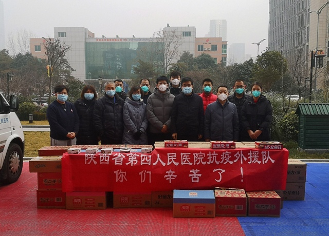 每逢佳节倍思亲,临近虎年春节,1月24日,由院党委副书记郭皖营带队,院工会、各党支部代表参加,赴亚色视频 四个外援队开展一线队员慰问,把院党委、院工会的关怀,全院职工的牵挂带到大家身边。每到一处,隔着玻璃的招手,远远的熟悉声音,互致问候倍感亲切。郭皖营副书记希望大家做好个人防护,圆满完成病区诊疗任务,并代表院党委祝福大家春节愉快,保重身体劳逸结合,将全院职工的问候一并带给队员家属。