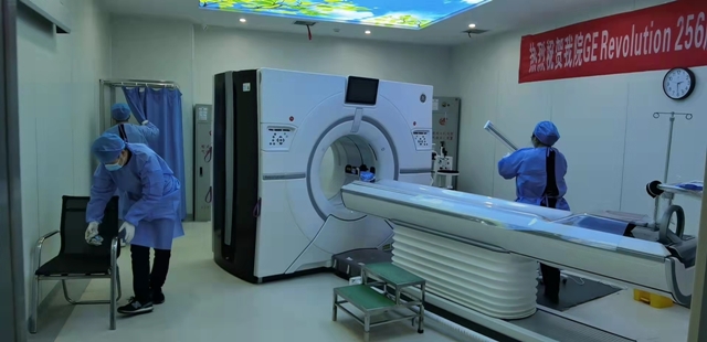 目前,全院整个区域的清洁、消毒及消毒后的环境物表核酸、普通微生物采样监测和紫外线灯强度监测等工作正在科学规范紧张有序地进行中。