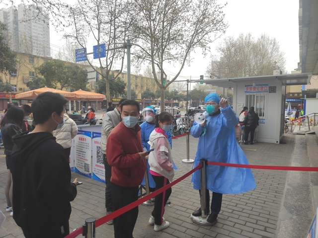 复课在即,前往省第四人民医院进行核酸检测人员急剧增加,等候采样的群众排起了长队。3月20日上午,为应对高峰期核酸检测人群增多。医院发热门诊核酸采样室迅速启动应急机制联合信息科、保卫科等部门不到半小时就开通绿色通道增设了两个采样窗口,科学调配核酸采样医务人员力量。现场还有相关科室人员及党员志愿者到医院核酸采集点进行录入登记和维护持续,极大地缓解了检测人员排队。