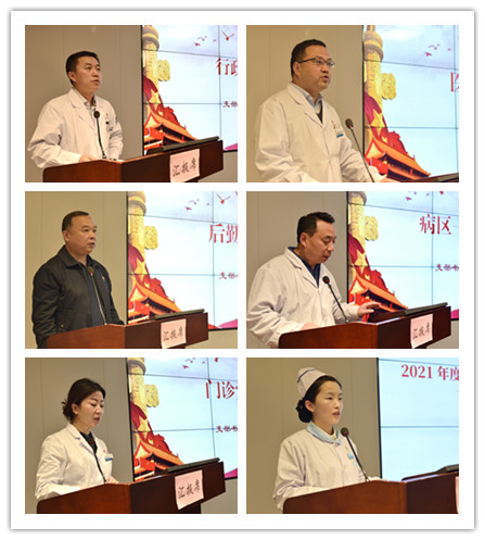 党委副书记、贾延院长对各党支部2021年的工作进行点评,给予肯定:一是各党支部对“两个确立”的认识有了明显提高,政治意识有所增强;二是各党支部能够结合各自特点积极开展工作,充分发挥了党支部战斗堡垒作用和党员先锋模范作用;三是党支部在围绕医院中心工作方面发挥了重要作用,有力推动了党建与业务的融合;四是能够查摆工作不足积极找到解决思路。并对今后的党建工作提出三点建议:一是带头将党建与业务进一步融合,二是带头落实各项规定,三是带头配合政府各项工作。郭皖营副书记在党建与业务互融共促进行了要求。