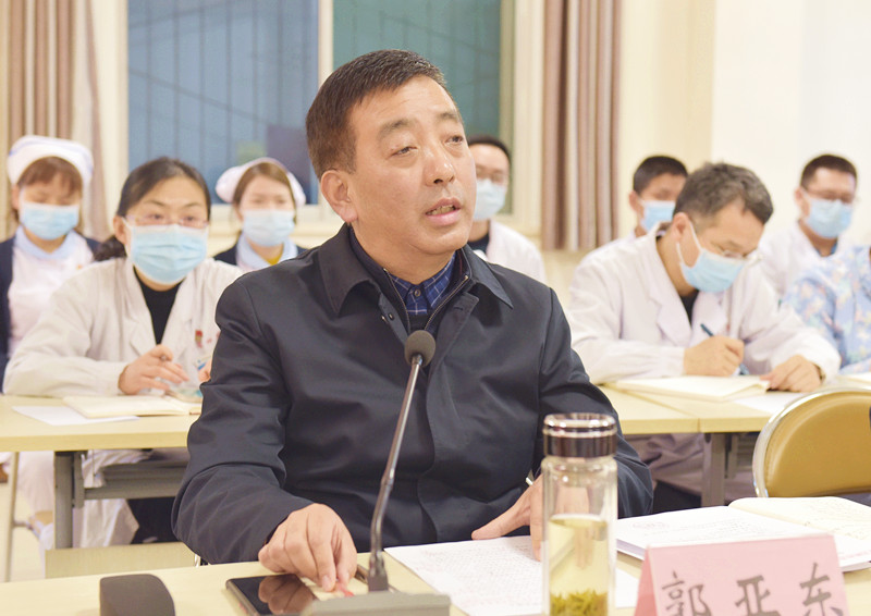 党委书记郭亚东同志对2021年全体党员干部职工在党史学习教育、疫情防控、助推公立医院高质量发展等重点工作中取得的工作成效给予了高度评价。结合2022年党建工作重点,提出五点要求:一是坚持正确的政治方向。各支部要持续深入学习贯彻习近平新时代中国特色社会主义思想,增强“四个意识”,坚定“四个自信”,做到“两个维护”。坚持正确的政治方向,提升必备素养和能力;二是要有想干事、干成事的魄力和胆识。要注重增强系统性、整体性、协同性,使各项举措相互配合、相互促进、相得益彰。要有“一盘棋”意识,把同志们参与工作的主动性与实际需要结合起来,提高工作水平;三是要满身正气学会做职工工作。在落实上级共同发展、共同进步、共同提高的要求上,主动带领大家撸起袖子、踮起脚尖、滚石上坡加油干,在提高领导能力、医疗水平等方面不断取得实实在在的成果;四是要有坚定的决心盯着问题抓落实。脚踏实地,以上率下,真抓实干,对患者高度负责,守好自己的“三分田”,尽力为群众服务。五是守住清正廉洁底线。提高在各种风险环境下拒腐防变和抵御风险的能力,习惯在监督和约束的环境中工作生活,敬畏权力、管好权力、慎用权力,坚守政治定力、纪律定力、道德定力、抵腐定力,守住党员干部的政治生命,始终保持拒腐蚀、永不沾的政治本色。