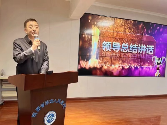 院党委书记郭亚东做总结讲话,代表院党委领导班子向全院护理人员致以节日问候和祝福,向所有受到表彰的优秀集体和先进个人表示热烈祝贺,并向护理人员家属表示衷心感谢。对全院护理人员的辛勤工作和取得的成绩给予高度肯定,对参加抗疫和坚持临床工作的护理人员给予高度赞扬。他希望受表彰的先进集体和先进个人珍惜荣誉,永葆初心,再接再厉,再创佳绩。要求全院干部职工要向受表彰的先进集体和先进个人学习,自觉肩负创新护理发展,拓展护理服务范围,构建医院+社区+家庭无缝隙护理服务新模式。为不断提高医院优质护理服务内涵、让患者满意、社会满意工作再上新台阶、新水平,做出新的更大的贡献。