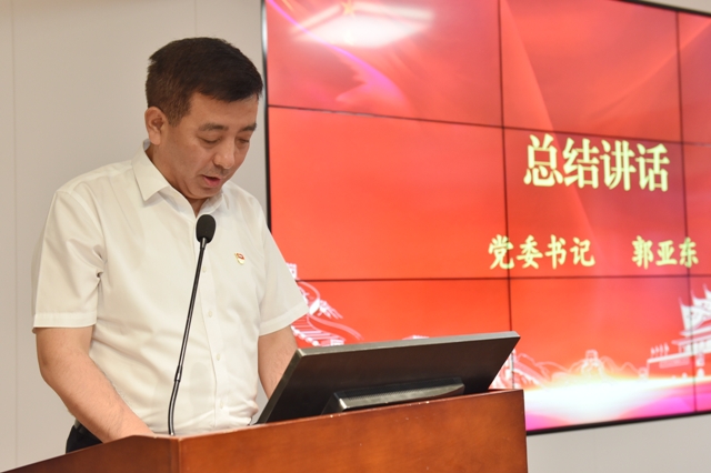 最后,党委书记郭亚东同志做总结讲话,并以树立《新三观》为题给与会全体党员讲授党课。他首先代表院党委,向受到表彰的先进基层党组织和优秀党员表示热烈的祝贺!向全体党员致以节日的问候!站在新的历史节点,他对全院党员干部提出三点要求,一要坚定理想信念,保持崇高追求;二要坚持为民服务,勇于担当责任;三要坚决抓好执行,创建优质品牌。全体党员务必以此次纪念会议为契机,进一步增强使命感、责任感与紧迫感,发挥表率作用,凝聚带动广大职工,增强定力、振奋精神,忠实履职、真抓实干,高质量完成下一阶段各项重点工作目标任务,高标准答好新时代答卷。以更加奋发有为的精神状态,更加求真务实的工作作风,忠诚履职尽责,勤奋干事创业,为服务百姓健康注入强大动力,以优异成绩迎接党的二十大!