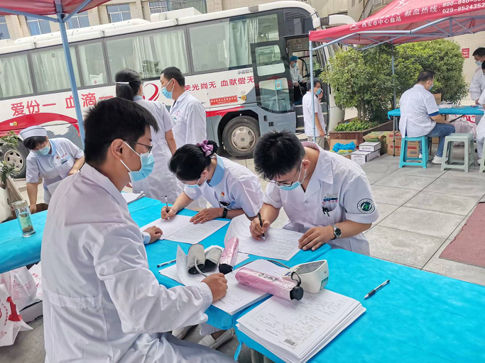 本次活动以“安全血液 拯救生命”为主题,让无偿献血具有更深刻的意义。上午8时,省血液中心的两辆采血车缓缓驶入亚色视频 住院部门前广场,市中心血站站长李恒新向医院颁发了“2021年度西安市团体献血先进单位”荣誉奖牌,随后献血活动正式拉开序幕。