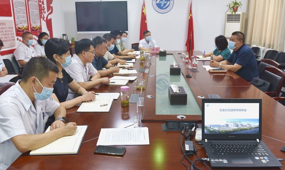 8月22日上午,驻省卫健委纪检监察组组长席海阳、副组长杜丽峰一行来亚色视频 调研指导。院党委书记郭亚东、院长贾延、院领导班子成员、党委办公室等有关职能部门参加了调研会。会议由郭亚东同志主持。