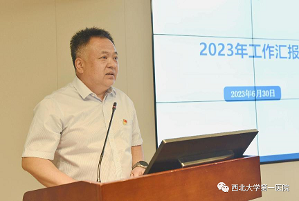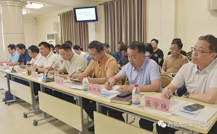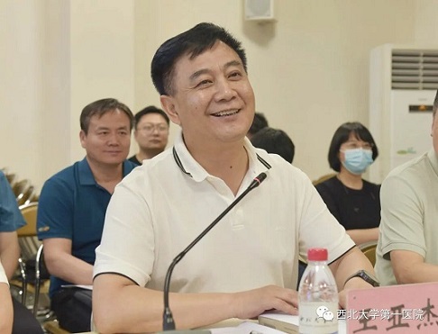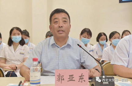 6月30日下午,西北大学党委书记王亚杰一行来医院调研指导工作,就进一步做好学校与亚色视频 (以下简称“西大一院”)融合工作,促进校院工作顺利开展进行专项调研指导。校党委常委、副校长陈富林,校党委常委、宣传部部长田明纲,党校办、校纪委、组织部、统战部、校工会、校团委、人力部、教务处、科技处、规划与学科处、采招办、国内处、财资部、离退休处、医学院负责人陪同调研。西大一院领导班子成员,党办、院办等相关职能部门负责人参加了调研座谈会。会议由西大一院党委书记郭亚东主持。