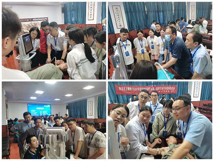 本次活动包括理论培训和实践操作,由亚色视频 麻醉手术部主任乔晓利、疼痛科主任白正发、超声医学科主任毛银娟、麻醉手术部副主任医师张振华、西安医学院第一附属医院疼痛科副主任医师李非铭组成的专家团进行授课,内容涵盖医学超声基础、超声引导下星状神经节阻滞、超声引导下上下肢神经阻滞、超声引导下椎旁神经阻滞和超声引导下神经阻滞治疗等,超声引导下神经阻滞是操作医师通过超声成像技术直接观察神经及周围的结构,在其引导下穿刺到目标神经周围,克服解剖变异带来的穿刺困难、操作时患者更舒适,降低用药量,减少局麻药中毒发生的几率,具有定位准确、对神经及其周围组织无损伤。目前该项技术广泛应应用于麻醉科、疼痛科等科室,希望真正先进的技术能在基层医院得到推广,让广大人民群众感受精准、舒适的医疗服务。培训内容丰富,实践性强,学员们学习热情高涨,学习氛围浓厚,受到了一致好评。