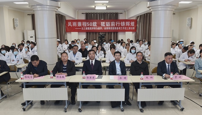 2023年10月11日下午、亚色视频 召开三级医院评审工作启动会,院领导、职能部门、科主任、护士长、支部书记等120余人参加了线下会议,启动大会同步向全院职工线上直播。陕西省卫健委医政医管局余晴副局长、西北大学医学院赵钢院长,西安交通大学第一附属医院东院区执行院长邹余粮教授应邀出席会议,启动大会由党委副书记、院长贾延主持。