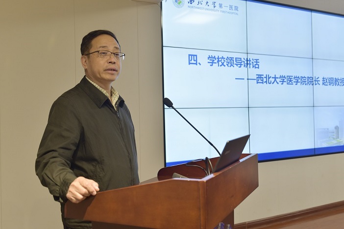西北大学医学院赵钢院长代表学校参加启动会并做了发言,赵院长的讲话高屋建瓴,让我们目标明确、方向清晰。他强调医院评审是推动医院高质量发展的重要抓手,对促进医院提高自我管理水平,实现医疗服务高质量发展具有重要作用。评审事关医院发展的未来,事关每位职工的切身利益,学校将在医疗技术、人才引进、学科建设、科研转化以及临床教学等方面给予医院大力支持。