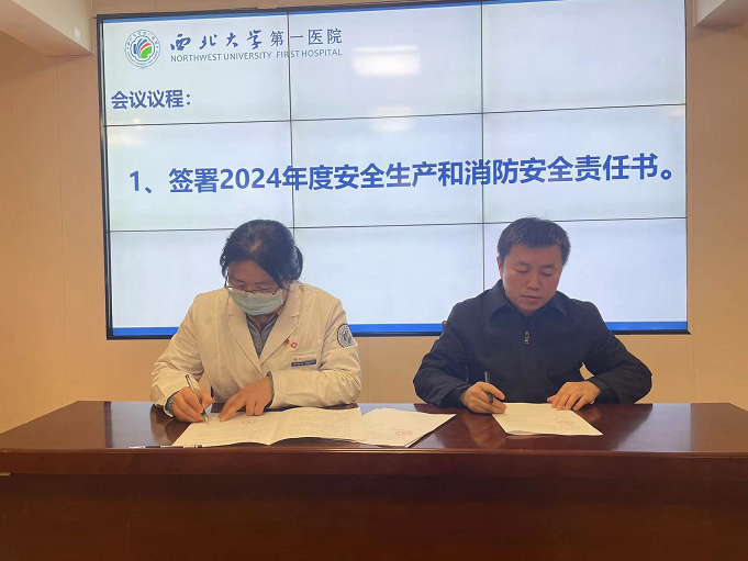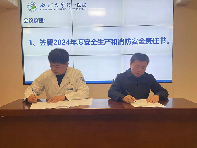 第一项:贾延院长代表医院与分管院长签署安全责任书。
