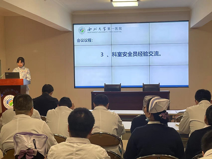 会上安全保卫部负责人李琛对全院安全生产隐患排查整改情况进行通报并结合医院实际对安全员进行培训。儿保科、麻醉手术部安全员做科室安全管理经验交流。