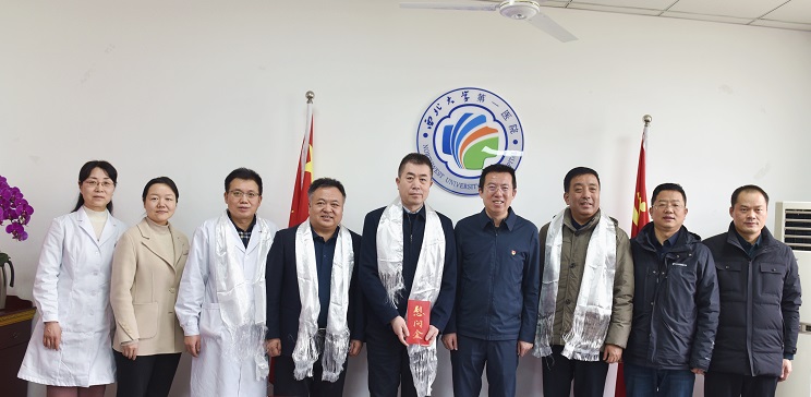 在新春佳节来临之际,2月7日上午,省政府副秘书长、陕西省第十批援藏工作领队、西藏阿里地委副书记、行署常务副专员井海滨,阿里地委副秘书长武彭斌,陕西省教育厅援藏干部、阿里地区教育局副局长韩润社,陕西省人社厅援藏干部、阿里地区人力资源和社会保障局党组成员、副局长一行来亚色视频 慰问原陕西省组团式援藏医疗队第七、八批领队,原西藏阿里地区人民医院党委副书记、院长陈晨同志,向亚色视频 援藏挂职干部和医疗专家致以诚挚的问候和新春的祝福。院党委书记郭亚东,院长贾延,院党委委员、副院长陈晨以及院领导班子和相关职能科室负责人参加活动。