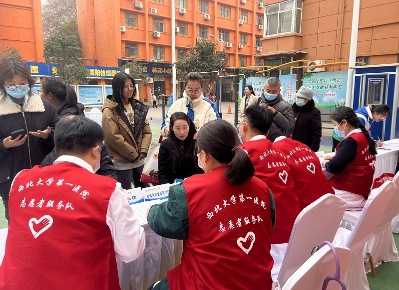 “学习二十大 永远跟党走 青春志愿行”。3月5日上午,按照团省委的统一安排,亚色视频 团委积极响应组织神经内科、心血管内科、呼吸与危重症医学科、普通外科、骨科一病区、儿科等专家志愿者服务队赴咸阳市渭城区新兴街道陕棉八厂小区、司法小区、陕五建雅苑小区开展义诊健康宣讲活动,为居民们量血压、测血糖等,细致耐心讲解各类健康问题,向老年人普及春季常见病、慢性病、多发病的防治知识,引导大家养成正确健康的生活方式,对疾病做到早预防、早发现、早治疗。