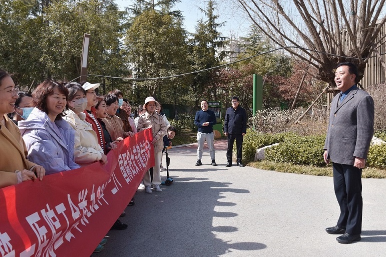 在新城区幸福林带,春意盎然、春光明媚。活动开始前院党委书记郭亚东同志做了热情洋溢的开场致辞。祝愿大家通过参与活动,放松心情、释放压力,享受运动的乐趣,感受生活的美好。祝福大家节日快乐,身体健康,工作愉快,家庭幸福。