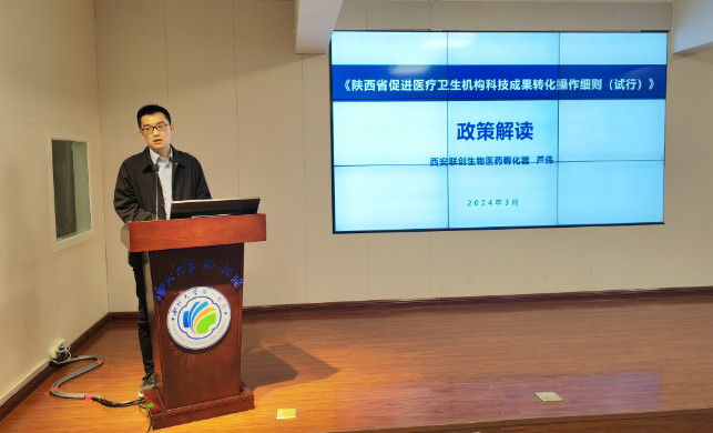 西安联创生物医药孵化器项目经理丁顺伟介绍了科研成果转化模式及利益如何分配;西安高新区技术经理人协会常务副会长李强分享了科研成果转化若干典型问题和工作要点;西安联创生物医药孵化器项目经理杨祎秋介绍了秋医疗器械创新成果转化的类型和医疗器械创新成果转化的路径;西安联创生物医药孵化器副总经理芦伟重点解读了陕西省医疗卫生机构科技成果转化操作细则,并对医疗机构成果转化案例进行了分享;西安交通大学第一附属医院科学部成果转化中心副主任王德普分享了本院科研成果政策制定和实践经验;秦创原创新促进中心政策法务部干部王睿洁介绍了秦创原科创项目孵化体系和秦创原总窗口的系列相关政策。随后,宣讲团专家对参会人员就科技成果转化过程中的工作流程等相关问题进行了答疑解惑。