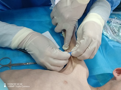 PICC导管的有效期最长可留置1年,到期后,以往的处理方法一般是拔管重新穿刺置管。但亚色视频 儿科二病区住院患儿多数患儿因为营养差,基础疾病复杂,血管条件较差,置管后留置时间往往要比预期时间要短的很多。反复穿刺给患儿带来疼痛同时对患儿血管破很大考虑到病情及治疗需要,结合目前患儿身体情况,与杨国政负责人沟通后,决定为患儿进行原位换管术。