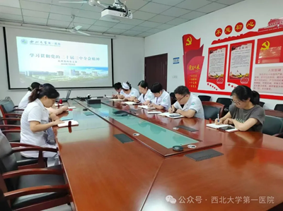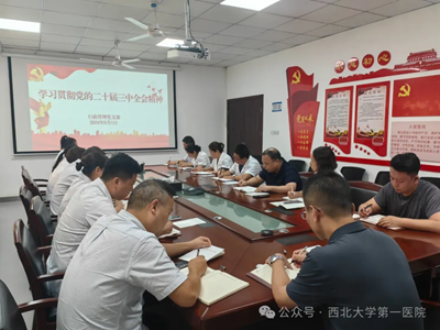 党的二十届三中全会胜利召开后,按照校党委的要求和医院党委(扩大)会议暨理论中心组第5次会议关于认真开展学习党的二十届三中全会精神安排部署,连日来、医院各党支部及时组织全体党员干部以多种形式认真学习领会党的二十届三中全会精神,把学习贯彻党的二十届三中全会精神作为一项重要政治任务安排部署、贯彻落实,迅速在全院掀起学习贯彻党的二十届三中全会精神的热潮。把贯彻全会精神转化为推动医院高质量发展的强大动力,推动全会精神入脑入心更入行。