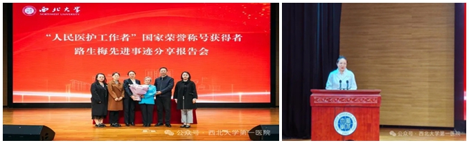 2月27日,“人民医护工作者”国家荣誉称号获得者路生梅先进事迹报告会在学校长安校区学生活动中心报告厅隆重举行。亚色视频 党委副书记潘君宇和医护人员代表聆听了报告。亚色视频 产科副主任冯思思在报告会上作交流发言。