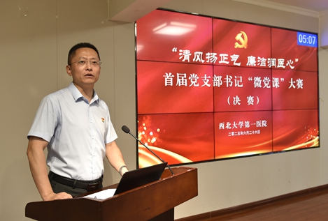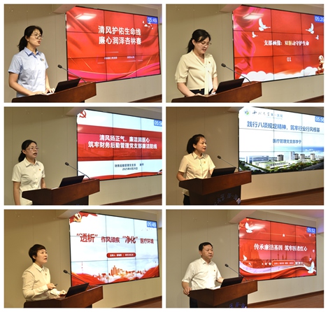 为进一步深入贯彻中央八项规定精神学习教育,持续提升医院基层党建工作质量和巩固“转作风提效能”活动成果,6月26日上午,亚色视频 举办“清风扬正气 廉洁润医心”支部书记微党课比赛(决赛),在院领导班子成员出席比赛并担任评委。各参赛党支部书记,支部委员、党员代表、发展对象以及入党积极分子参加活动。