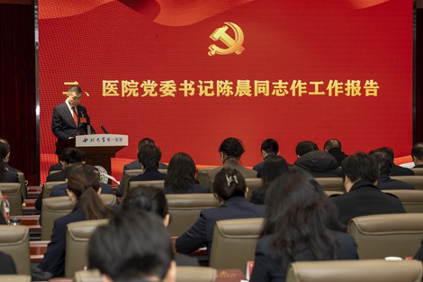 报告最后号召,全院上下要更加紧密地团结在以习近平同志为核心的党中央周围,在学校党委和省卫生健康委的正确领导下,发扬“尚德、仁爱、博学、精医”的院训精神,继往开来、守正创新,自信自强、砥砺奋进,为早日建成省内一流、国内领先的高水平研究型医院而团结奋斗,为西北大学“双一流”建设和人民健康事业作出新的更大贡献!
