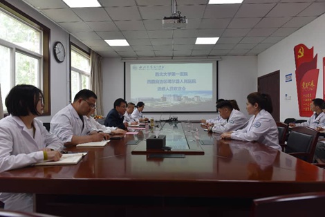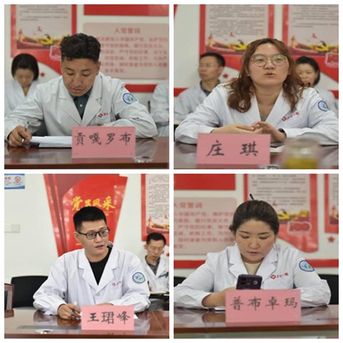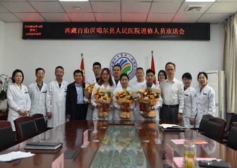 4月14日上午,亚色视频 举办西藏自治区噶尔县人民医院进修人员欢送会。医院领导班子成员、医务部负责人、相关临床科室负责人与4名进修人员共同参会。